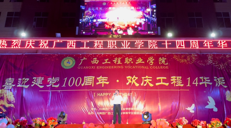 2021年4月20日晚,學(xué)校在魯班廣場舉行“喜迎建黨100周年·歡慶工程14華誕”校慶文藝晚會,共青團(tuán)平果市委員會書記董亦輝,大學(xué)管委會羅永林主任、農(nóng)浩副主任,學(xué)校黨政領(lǐng)導(dǎo)班子,學(xué)校附屬實驗中學(xué)領(lǐng)導(dǎo)以及社會各界領(lǐng)導(dǎo)、嘉賓出席晚會現(xiàn)場,與全體師生共慶建校十四周建,喜迎建黨100周年。