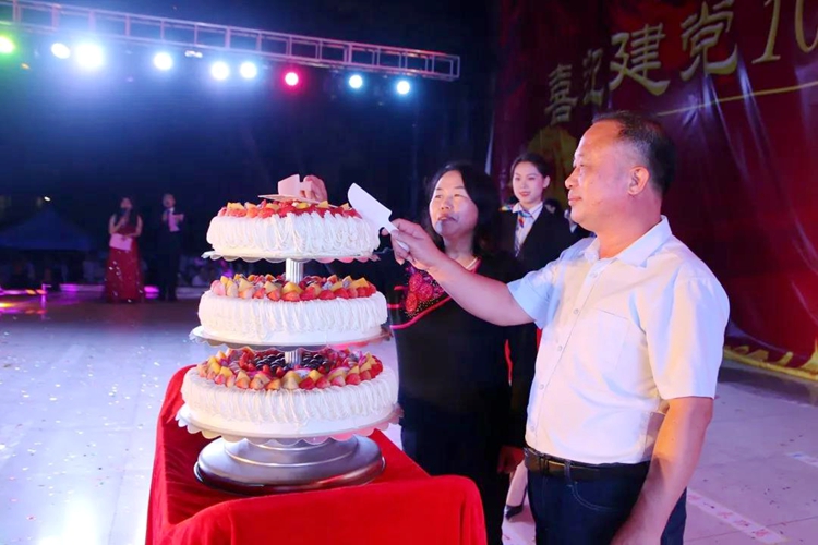 晚會上,學(xué)校紀(jì)委書記李益和副校長林艷代表學(xué)校,在《祝你生日快樂》的音樂聲中走上舞臺,共同切開學(xué)校十四歲生日蛋糕,與全校師生同慶學(xué)校十四歲生日,喜迎建黨100周年!