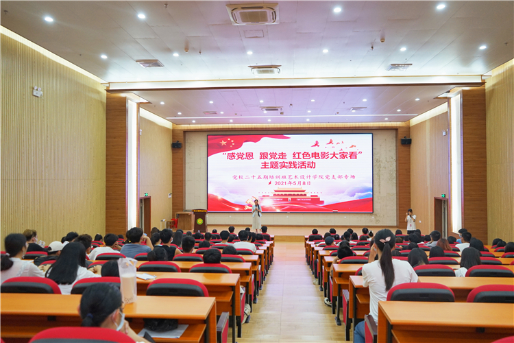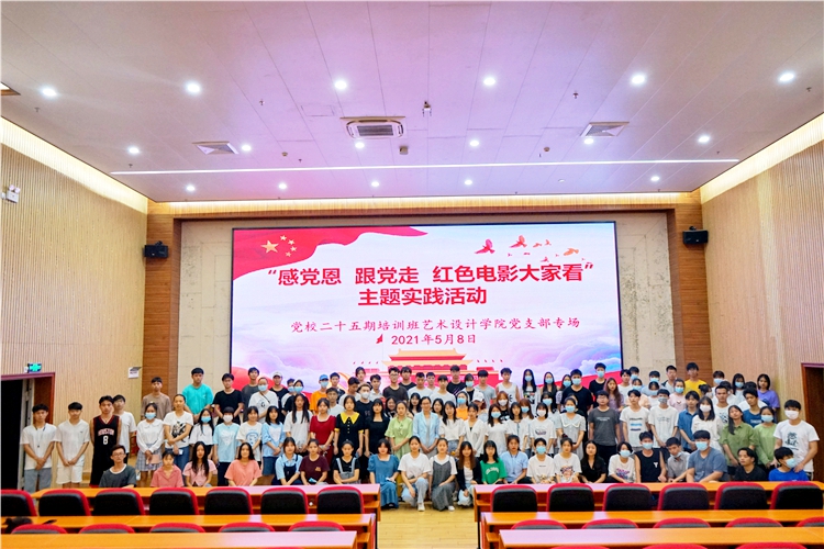 2021年5月8日晚,藝術設計學院在圖文信息大樓一樓學術報告廳開展“感恩黨,跟黨走,紅色電影大家看”主題實踐活動黨校第二十五期培訓班藝術設計學院黨支部專場,黨校第二十五期培訓班藝術設計學院全體學員參加了本次活動,活動由黨支部書記覃鳳姣主持,她同大家一起觀看了《血戰(zhàn)湘江》紅色影片。