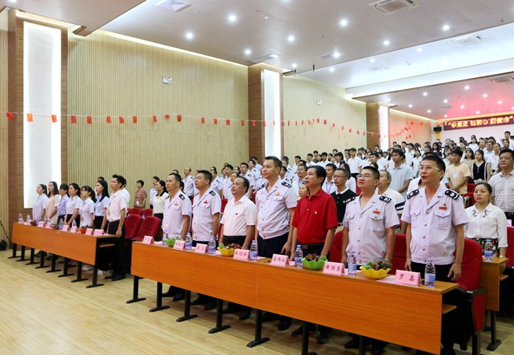國家稅務(wù)總局平果市稅務(wù)局黨委書記、局長黃紹謙等領(lǐng)導(dǎo),學(xué)校校黨委書記呂偉斌等黨政領(lǐng)導(dǎo)班子以及各部門負(fù)責(zé)人、各黨支部書記及分團(tuán)委書記出席比賽現(xiàn)場。國家稅務(wù)總局平果市稅務(wù)局黨員代表及我校師生黨員代表觀看比賽。陳威、黃詩晴、廖嬌等7位老師擔(dān)任本次大賽評委。
