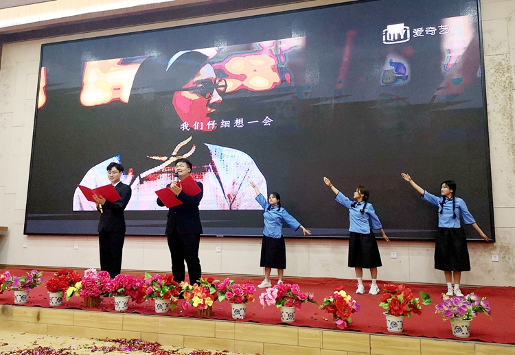 學(xué)校黨委書記呂偉斌致辭,他指出,開展紅色經(jīng)典詩詞誦讀比賽,是一堂生動(dòng)的黨史學(xué)習(xí)教育課,豐富了廣大師生黨史學(xué)習(xí)的形式。黨的歷史是最好的教科書,廣大青年學(xué)生通過誦讀紅色經(jīng)典,回望黨的波瀾壯闊的百年歷史,英烈事跡,再現(xiàn)了中國共產(chǎn)黨矢志踐行初心使命的奮斗歷程,激發(fā)了青年大學(xué)生樹立遠(yuǎn)大的政治理想,傳承紅色基因,賡續(xù)共產(chǎn)黨人的精神血脈。希望學(xué)校師生在黨史學(xué)習(xí)中汲取奮進(jìn)力量,堅(jiān)定理想信念,矢志不渝感黨恩、聽黨話、跟黨走,不忘初心、牢記使命,為建設(shè)社會主義現(xiàn)代化強(qiáng)國貢獻(xiàn)力量。