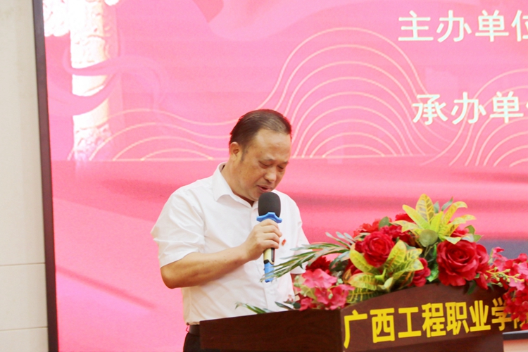 學(xué)校紀(jì)委書記李益宣布廣西工程職業(yè)學(xué)院“學(xué)黨史、銘初心、擔(dān)使命,慶祝建黨100周年紅色經(jīng)典詩詞朗誦比賽”正式開始!