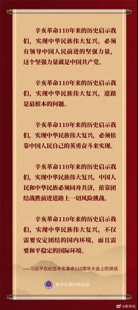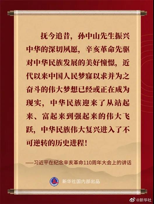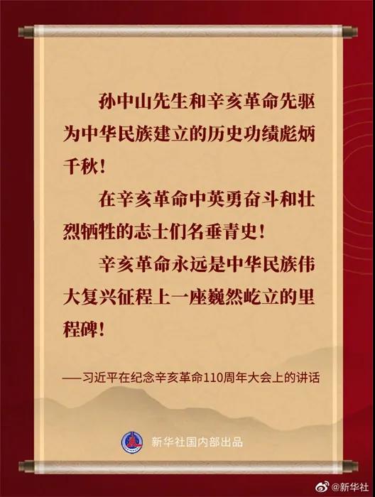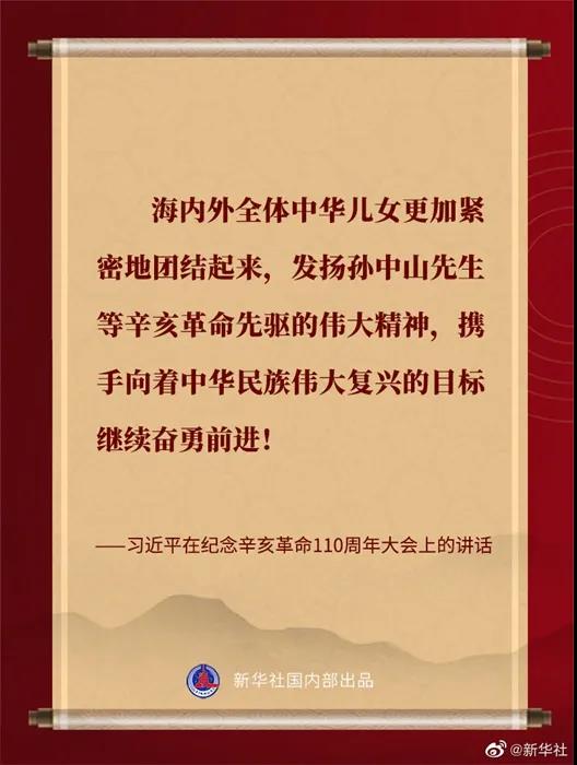 紀(jì)念辛亥革命110周年大會9日上午在北京人民大會堂隆重舉行。習(xí)近平出席大會并發(fā)表重要講話??匆c(diǎn)↓