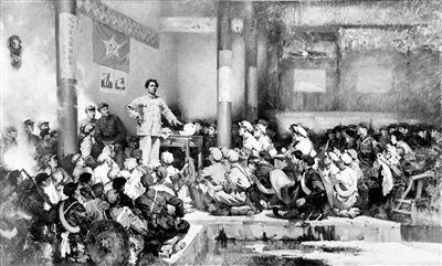 1929年12月底,中國共產(chǎn)黨紅軍第4軍第九次代表大會在福建省上杭縣古田召開。古田會議在黨的歷史上以自我革命的方式糾正了黨和紅軍自身存在的問題,使正確的建黨建軍原則逐步得以實(shí)行,顯示了我們黨極強(qiáng)的自我糾錯(cuò)和自我修復(fù)能力。圖為油畫《古田會議》。