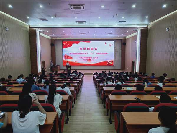 2021年9月7日下午,學(xué)校黨委在圖文信息大樓一樓學(xué)術(shù)報(bào)告廳舉行學(xué)習(xí)貫徹習(xí)近平總書記“七一”重要講話精神宣講報(bào)告會(huì),學(xué)校黨委宣傳部部長(zhǎng)、副校長(zhǎng)彭高彬,學(xué)校校長(zhǎng)助理黃秋霞、各黨支部書記、各部門負(fù)責(zé)人、全校師生黨員、教師代表、學(xué)生代表共300多人參加宣講報(bào)告會(huì)。宣講報(bào)告會(huì)由黨委辦公室副主任黃香琴主持,學(xué)校黨委書記呂偉斌研究員作宣講報(bào)告。
