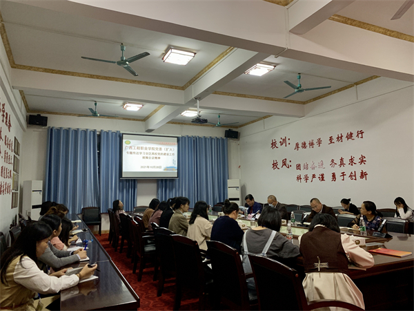 10月28日下午,我校黨委在圖書館會(huì)議室召開理論學(xué)習(xí)中心組(擴(kuò)大)會(huì)議,教育廳督導(dǎo)專員、校黨委書記呂偉斌,黨委副書記胡細(xì)木,黨委委員、副校長(zhǎng)彭高彬,各黨委委員、各黨支部書記、全體思政教學(xué)部教師參加會(huì)議,會(huì)議由呂偉斌主持。