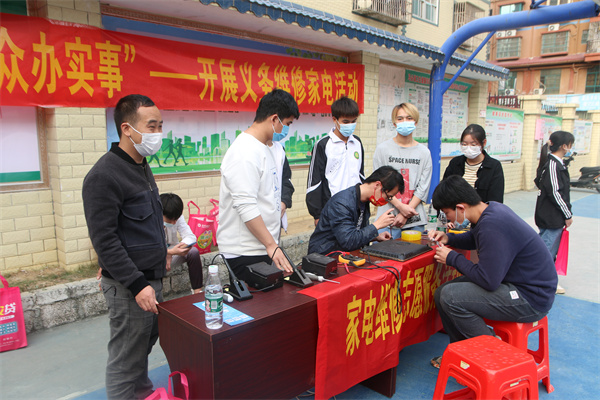 在黨員進社區(qū)“服務(wù)群眾、奉獻社區(qū)”活動中,學校選派30多名師生黨員,組建家電維修服務(wù)隊到社區(qū)開展家電維修志愿服務(wù)活動,提供免費服務(wù),幫助社區(qū)居民維修小家電共20多件,真正為群眾辦好事、辦實事、解決社區(qū)群眾實際困難和問題,讓居民家門口享受貼心服務(wù),同時讓學生黨員也能鍛煉動手能力,活學活用,積累實際經(jīng)驗。
