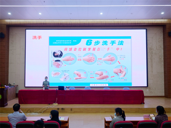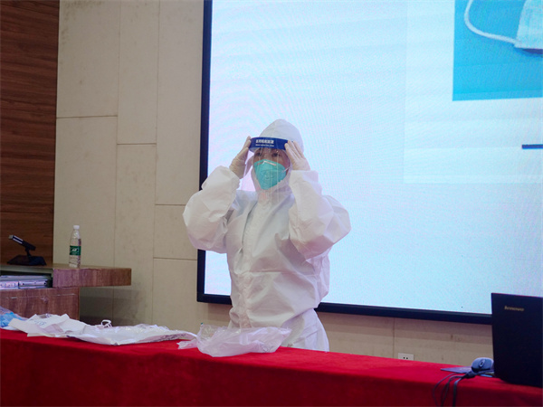 培訓(xùn)會(huì)上,專家還就如何科學(xué)佩戴口罩、科學(xué)穿、脫防護(hù)服、科學(xué)洗手等內(nèi)容作了現(xiàn)場(chǎng)演示培訓(xùn)。