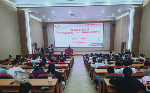 11月8日,學(xué)校在圖文信息大樓一樓學(xué)術(shù)報(bào)告廳召開學(xué)習(xí)宣傳貫徹黨的二十大精神宣講報(bào)告會,學(xué)校黨委書記呂偉斌作宣講報(bào)告。學(xué)校黨委副書記黃秋霞,校長助理蔣茂麗等校級領(lǐng)導(dǎo),各黨(總)支部書記、各處室負(fù)責(zé)人、教師黨員、輔導(dǎo)員、教師代表等400多人參加報(bào)告會。報(bào)告會由黨委副書記黃秋霞主持。