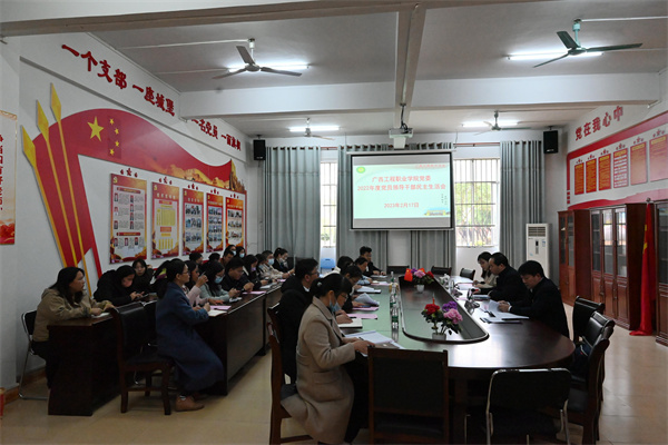 2023年2月17日下午,在圖書館一樓黨員活動室,我校召開2022年度黨員領(lǐng)導(dǎo)干部民主生活會。學(xué)校黨委領(lǐng)導(dǎo)班子全體成員出席,紀(jì)委委員、各黨(總)支部書記及副書記列席會議。百色市委教育工委辦公室李飛勇老師、黃思老師到會指導(dǎo)。會議由學(xué)校黨委書記蒙本曼主持。