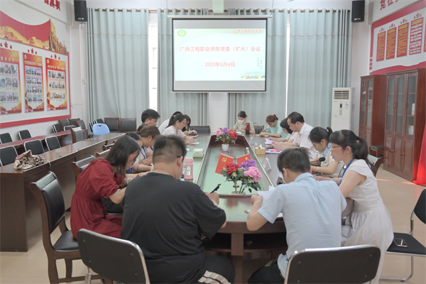 5月6日,我校在圖書館黨員活動室召開黨委(擴大)會議。學校黨委書記蒙本曼,黨委副書記黃秋霞,紀委書記、副校長彭高彬,各黨委委員,各黨(總)支部書記、副書記和支委及黨委辦全體成員參加會議。
