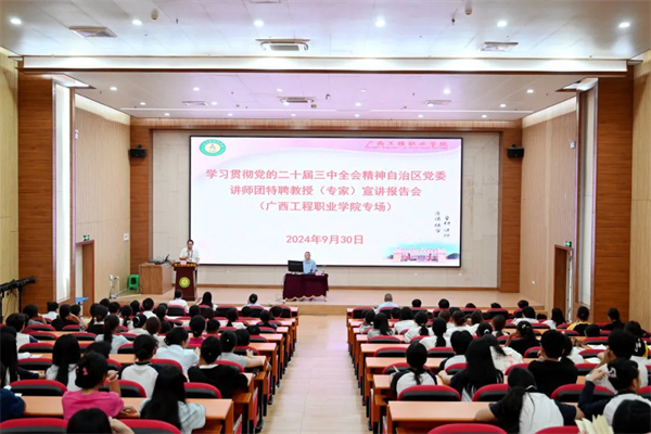 9月30日上午,學習貫徹黨的二十屆三中全會精神自治區(qū)黨委講師團特聘教授(專家)宣講報告會在我校圖文信息大樓一樓學術報告廳舉行,自治區(qū)黨委講師團特聘教授(專家)、廣西師范大學馬克思主義學院孟憲平教授作宣講報告。