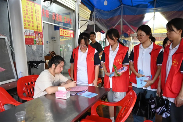 黨委宣傳部部長(zhǎng)黃麗娟帶領(lǐng)各支部預(yù)備黨員、發(fā)展對(duì)象、積極分子到網(wǎng)格責(zé)任區(qū)商鋪進(jìn)行創(chuàng)文明城市宣傳