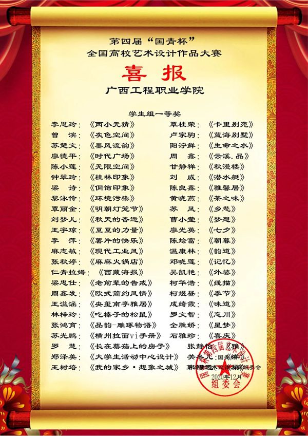 過去一年,人才培養(yǎng)水平全面提升。新增學(xué)前教育、幼兒發(fā)展與健康管理專業(yè);榮獲第八屆全國高校數(shù)字藝術(shù)設(shè)計大賽華南賽區(qū)一等獎1項、二等獎7項、三等獎9項,全國總決賽二等獎和三等獎各1項;獲第四屆“國青杯” 全國高校藝術(shù)設(shè)計作品大賽學(xué)生組獎項201項,其中一等獎50項、二等獎73項、三等獎78項;教師組獲獎11項,其中一等獎5項、二等獎6項;“學(xué)創(chuàng)杯”2020年全國大學(xué)生創(chuàng)業(yè)模擬綜合大賽區(qū)級二等獎3項;獲平果市“互聯(lián)網(wǎng)+”大學(xué)生創(chuàng)新創(chuàng)業(yè)大賽金獎1項,銀獎2項,銅獎1項。