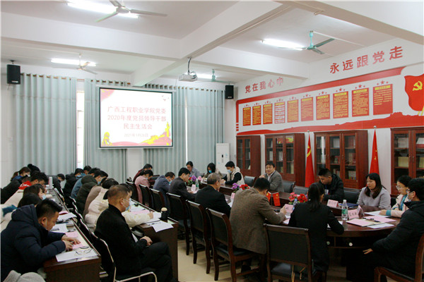 2021年1月26日下午,我校2020年度黨員領(lǐng)導(dǎo)干部民主生活會(huì)在圖書館一樓黨員活動(dòng)室召開。百色市委教育工委委員、市教育局黨組成員、副局長(zhǎng)韋海溢到會(huì)督導(dǎo)。我校黨委書記呂偉斌、紀(jì)委書記、董事長(zhǎng)李益以及黨委領(lǐng)導(dǎo)班子其他成員參加會(huì)議,黨委辦公室、各黨支部書記及支委等列席會(huì)議。