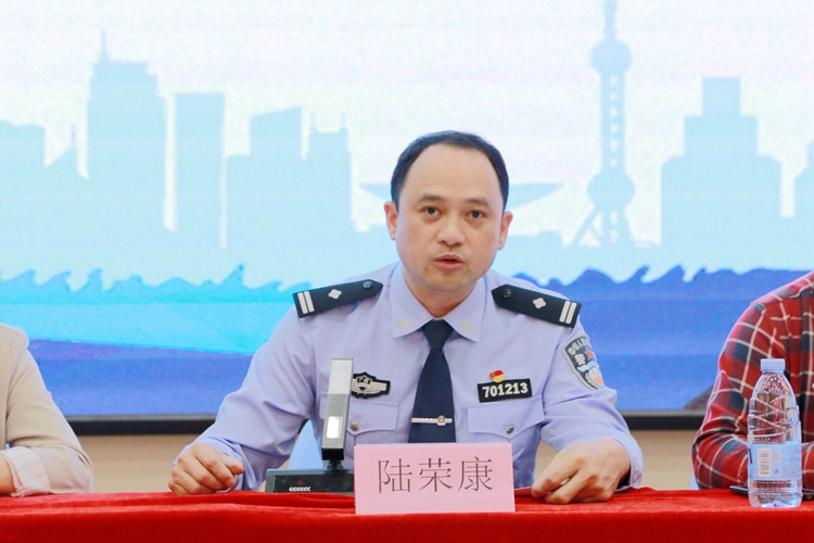 平果市打擊傳銷工作領導小組辦公室副主任、公安局副局長陸榮康作防范傳銷知識講座