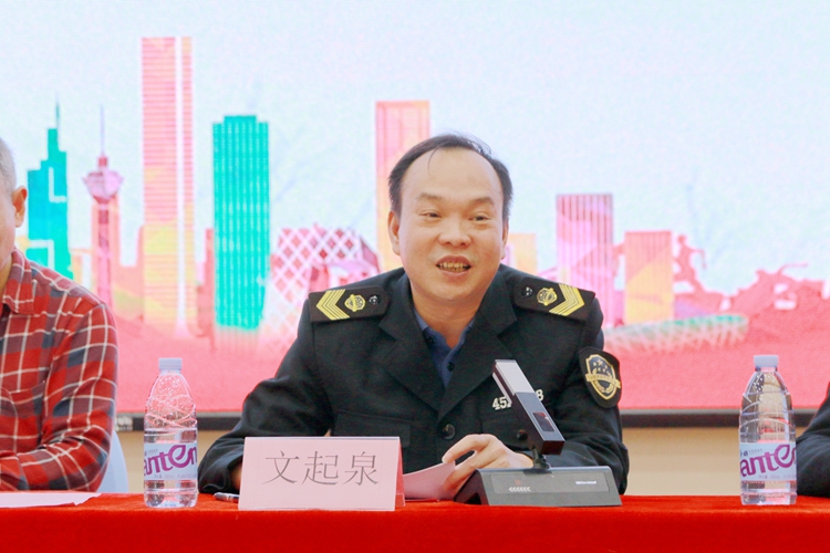 平果市打擊傳銷工作領導小組辦公室副主任、市場監(jiān)督管理局副局長文起泉作防范傳銷知識講座