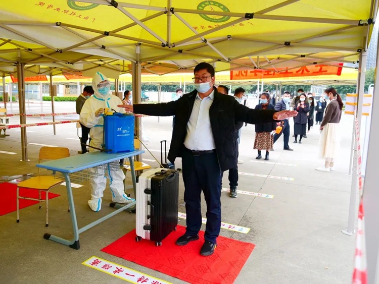 各組工作人員提前到崗,互測(cè)體溫并進(jìn)行記錄。返校學(xué)生按照規(guī)定在校門(mén)外排隊(duì)、掃碼、測(cè)溫、行李消殺等。值班人員在指定位置迎接學(xué)生入校,并持續(xù)觀看紅外線(xiàn)熱感測(cè)溫儀的監(jiān)測(cè)數(shù)據(jù),若發(fā)現(xiàn)異常情況,則由校醫(yī)將該學(xué)生帶至臨時(shí)隔離區(qū),并通知上級(jí)防控中心。
