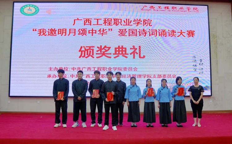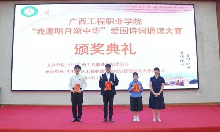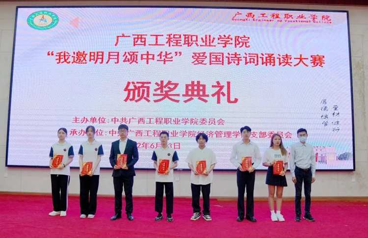 為弘揚中華優(yōu)秀傳統(tǒng)文化,以中華經(jīng)典、紅色文化鑄魂育人奏響愛黨、愛國、愛社會主義的主旋律,鑄牢中華民族共同體意識,凝聚奮進新征程、建功新時代的磅礴力量,以優(yōu)異成績迎接黨的二十大勝利召開。2022年6月13日晚,廣西工程職業(yè)學院在圖文信息一樓學術報告廳舉行“我邀明月頌中華”愛國詩詞朗誦大賽決賽。比賽由中共廣西工程職業(yè)學院委員會主辦,中共廣西工程職業(yè)學院經(jīng)濟管理學院支部委員會承辦。