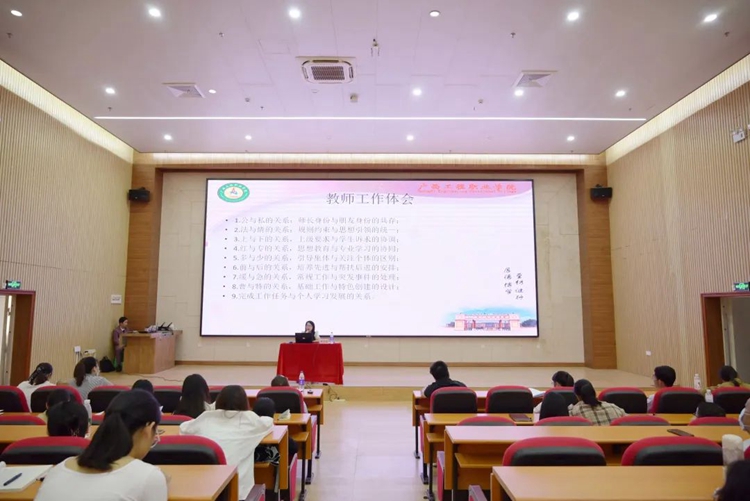 培訓中,黃秋霞副書記以“五問”(“為滿足需要工作,還是為興趣工作”、“著眼當下謀劃,還是著眼未來規(guī)劃”、“事事等待安排,還是主動尋求機會”、“牢騷對待困難,還是積極樂觀化解”、“對待目標三分鐘熱度,還是永久激情”)引入講座,引起了全體教職工的深刻反思。 黃秋霞副書記在講座中,主要從“教師、師德、師風”內(nèi)涵、《新時代高校教師職業(yè)行為十項準則》進行解讀,對高校意識形態(tài)工作、工作執(zhí)行力、教學工作、學生工作、高校輔導員工作、工作五立原則與七個主動等方面,通過鮮活的事件、經(jīng)典案例和自身工作經(jīng)驗進行培訓,內(nèi)容詳實,發(fā)人深省,具有很強的指導性和操作性。