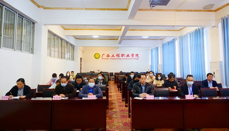 我校在圖書館報告廳設(shè)立分會場,校黨委書記蒙本曼,紀(jì)委書記、副校長彭高彬,副校長黃德偉、吳先夏,校長助理梁善雅及各部門負(fù)責(zé)人參加會議。