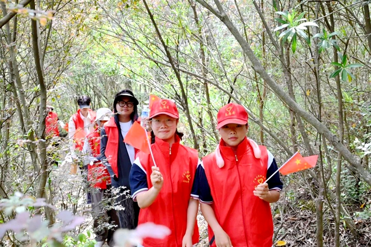 全體實(shí)踐團(tuán)成員,身著紅色隊服,手拿小紅旗,懷著無比激動的心情,邁著矯健的步伐,唱著紅歌,重走“小平路”,沿著鄧小平同志走過的足跡,體驗紅軍當(dāng)年的艱辛,感受著革命先輩們的戰(zhàn)斗生活。