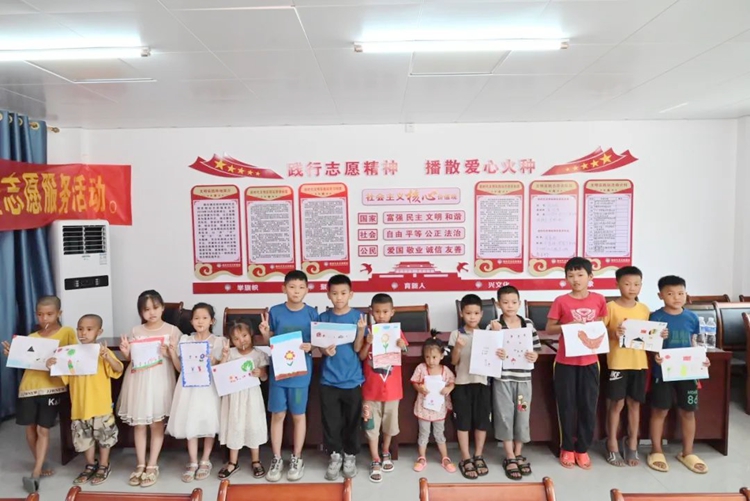 學(xué)校“愛(ài)無(wú)止境,星火傳承”教育關(guān)愛(ài)服務(wù)團(tuán)組織當(dāng)?shù)亓羰貎和_(kāi)展了“童心港灣,用愛(ài)陪伴”關(guān)愛(ài)留守兒童志愿服務(wù)活動(dòng)?;顒?dòng)中,服務(wù)團(tuán)成員教孩子們說(shuō)普通話、朗誦、唱歌、畫(huà)畫(huà)、玩游戲,與孩子們談心談話、開(kāi)展心理疏導(dǎo),給孩子們分發(fā)糖果與紀(jì)念品,開(kāi)展問(wèn)卷調(diào)查等。服務(wù)團(tuán)成員的朝氣蓬勃感染著留守兒童,孩子們露出最燦爛的笑容,整個(gè)活動(dòng)現(xiàn)場(chǎng)充滿歡聲笑語(yǔ),氣氛十分融洽。服務(wù)團(tuán)成員紛紛表示,要學(xué)習(xí)榜樣精神,傳遞榜樣力量,在奉獻(xiàn)中積極成長(zhǎng),在奉獻(xiàn)中收獲快樂(lè)。