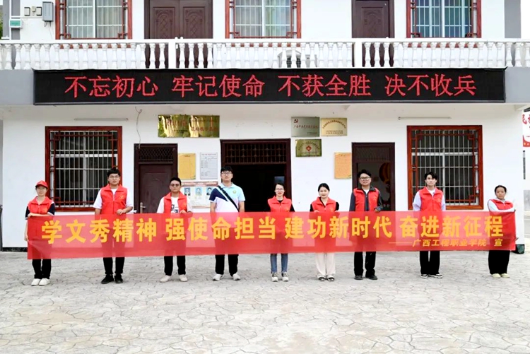 百色市樂(lè)業(yè)縣新化鎮(zhèn)百坭村是“全國(guó)優(yōu)秀共產(chǎn)黨員”“七一勛章”獲得者、時(shí)代楷模黃文秀同志生前駐村奮斗過(guò)的地方。為學(xué)習(xí)榜樣精神,傳遞榜樣力量,激發(fā)青年學(xué)生為助力鄉(xiāng)村振興貢獻(xiàn)青春力量,2023年7月17日,廣西工程職業(yè)學(xué)院“行紅色足跡,筑青春夢(mèng)想”實(shí)踐團(tuán)、“愛(ài)無(wú)止境,星火傳承”教育關(guān)愛(ài)服務(wù)團(tuán)在學(xué)校黨委副書(shū)記黃秋霞、校團(tuán)委副書(shū)記李麗清的帶領(lǐng)下來(lái)到了百色市樂(lè)業(yè)縣新化鎮(zhèn)百坭村開(kāi)展暑期“三下鄉(xiāng)”社會(huì)實(shí)踐活動(dòng)。