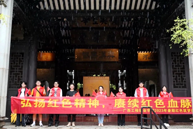 為深入學(xué)習(xí)貫徹習(xí)近平新時代中國特色社會主義思想和黨的二十大精神,貫徹“學(xué)思想、強黨性、重實踐、建新功”的總要求,2023年7月18日,廣西工程職業(yè)學(xué)院“行紅色足跡,筑青春夢想”實踐團在學(xué)校黨委副書記黃秋霞、校團委副書記李麗清的帶領(lǐng)下到百色起義紀(jì)念館、粵東會館、右江革命紀(jì)念館等地開展黨史學(xué)習(xí)教育,追憶革命先輩,傳承紅色基因,砥礪奮勇前行。