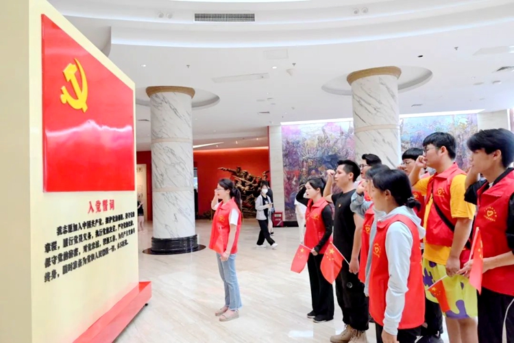 在百色起義紀(jì)念館,實踐團全體師生黨員重溫入黨誓詞,整齊統(tǒng)一、鏗鏘有力的宣誓聲鼓舞了大家對黨絕對忠誠、絕對純潔、絕對可靠和為共產(chǎn)主義奮斗終身的堅定信念和決心。