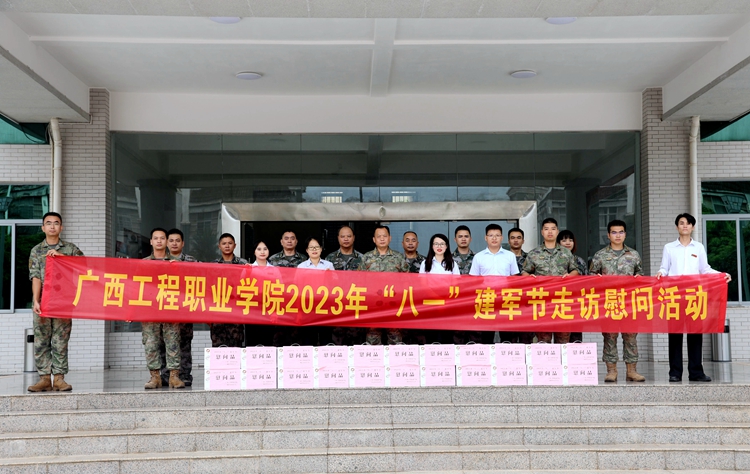 為弘揚(yáng)擁軍優(yōu)屬的優(yōu)良傳統(tǒng),進(jìn)一步增強(qiáng)國(guó)防觀念,賡續(xù)紅色血脈,在熱烈慶祝中國(guó)人民解放軍建軍96周年之際,8月1日上午,學(xué)校黨委副書記黃秋霞,黨委委員、學(xué)生工作處副處長(zhǎng)李麗詩,學(xué)生工作處資助科科長(zhǎng)范玉翠,基建處科長(zhǎng)李捷,征兵工作站工作人員等一行到平果市武裝部開展廣西工程職業(yè)學(xué)院2023 年“八一”建軍節(jié)走訪慰問活動(dòng)。