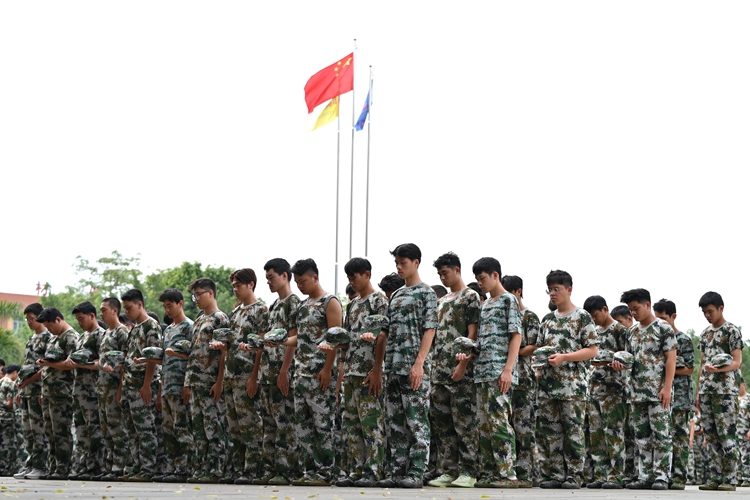 活動中,全體學生面對國旗,摘帽肅立默哀,深切緬懷在“九一八”事變及抗日戰(zhàn)爭中英勇犧牲的烈士們,銘記歷史,奮勇向前。