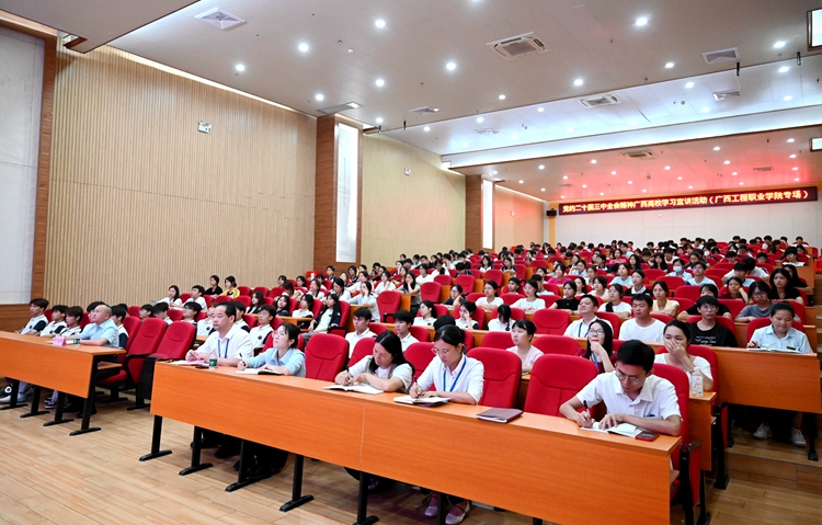 學(xué)校將以此次宣講活動為契機(jī),深入學(xué)習(xí)貫徹黨的二十屆三中全會精神,深刻領(lǐng)會其精神實(shí)質(zhì)和豐富內(nèi)涵,把全會精神與學(xué)校各項(xiàng)教育教學(xué)工作實(shí)際相結(jié)合,以更加堅(jiān)定的信念、更加主動的擔(dān)當(dāng),為黨育人、為國育才,推動學(xué)校事業(yè)高質(zhì)量發(fā)展,為奮力譜寫中國式現(xiàn)代化廣西篇章貢獻(xiàn)廣工程院力量。
