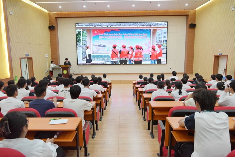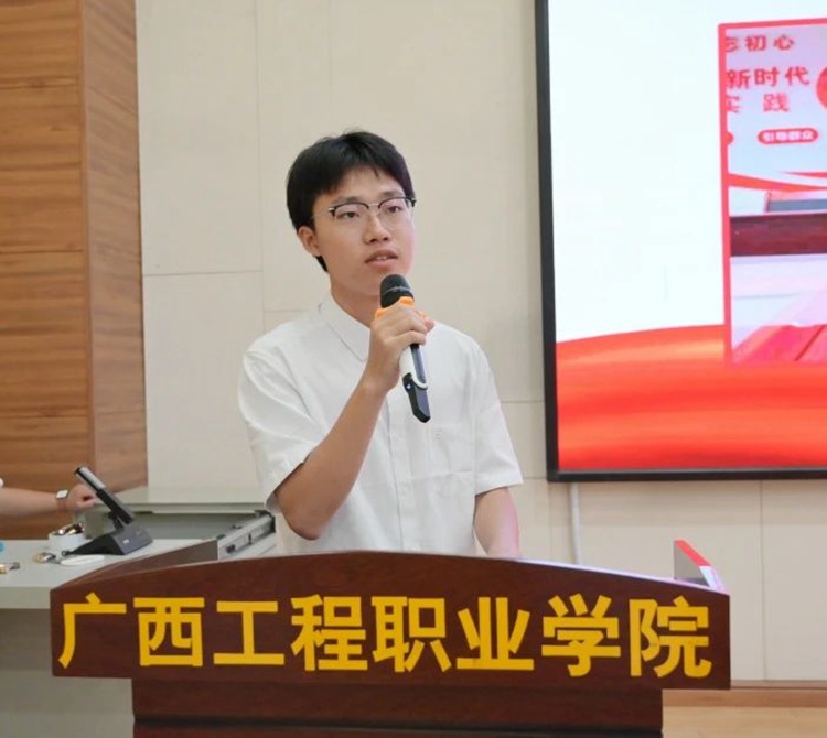 周培分享主題《青春為中國式現(xiàn)代化挺膺擔當》。列寧巖、魁星樓、右江革命紀念館與百谷紅軍村,這些紅色革命紀念場所,如同一座座永不褪色“精神豐碑”,同學們通過參觀這些紅色革命紀念場所,重溫黨的光輝歷程,傳承革命精神。通過走進芒果園、深入社區(qū)開展助力鄉(xiāng)村振興志愿服務,增強歷史使命感和責任感,激發(fā)青年學生積極投身社會實踐,助力鄉(xiāng)村振興,繪就鄉(xiāng)村振興藍圖。