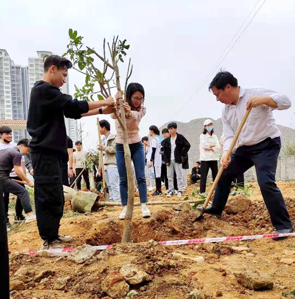 綠水青山就是金山銀山。乘著三月的春風(fēng),3月14日,廣西工程職業(yè)學(xué)院舉行雷鋒月暨植樹節(jié)活動。學(xué)校領(lǐng)導(dǎo)班子及師生積極參與植樹活動。