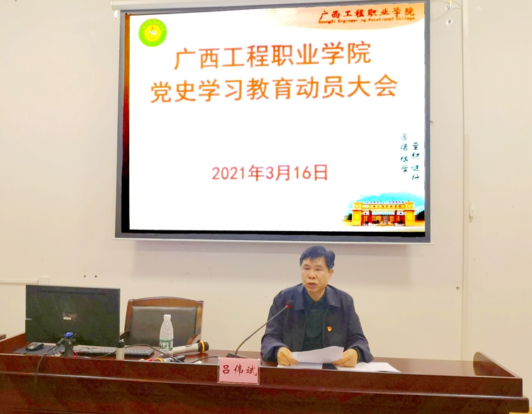 3月16日,廣西工程職業(yè)學(xué)院召開(kāi)黨史學(xué)習(xí)教育動(dòng)員大會(huì),學(xué)校黨委書(shū)記呂偉斌出席會(huì)議并作動(dòng)員講話(huà),會(huì)議由學(xué)校黨委副書(shū)記、副校長(zhǎng)胡細(xì)木主持,學(xué)校校長(zhǎng)唐林、副校長(zhǎng)羅艷妮、校長(zhǎng)助理黃秋霞等校級(jí)領(lǐng)導(dǎo),全體教職工黨員、在校學(xué)生黨員等參加會(huì)議。