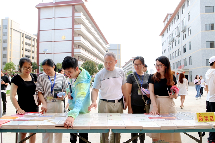 啟動儀式結(jié)束,平果市新華書店有限公司還在圖文信息大樓前展出紅色讀物,吸引了眾多老師和同學(xué)前來參觀。