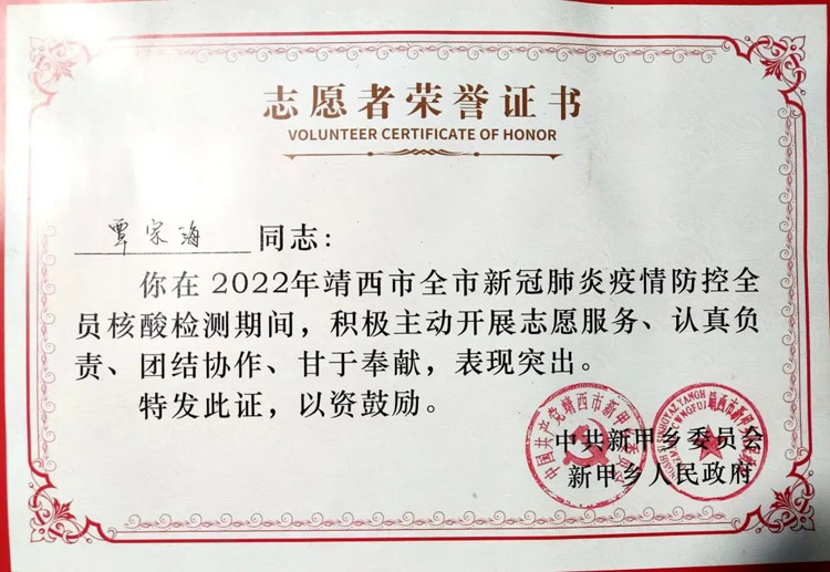 侯有峰,21級電氣3班,在廣西隆林各族自治縣隆或鎮(zhèn)龍爽村壩榮屯參加疫情防控志愿服務(wù)工作