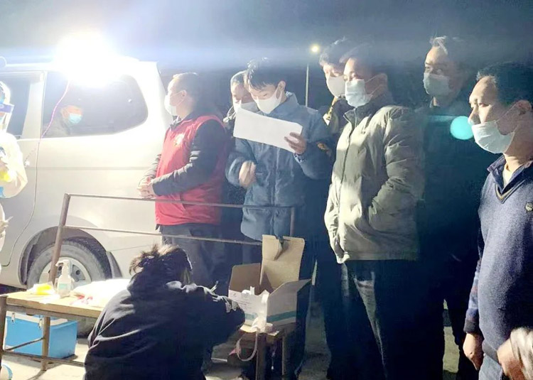 覃宗海,20級會計(jì)1班,在靖西市新甲鄉(xiāng)協(xié)助工作人員采集核酸檢測