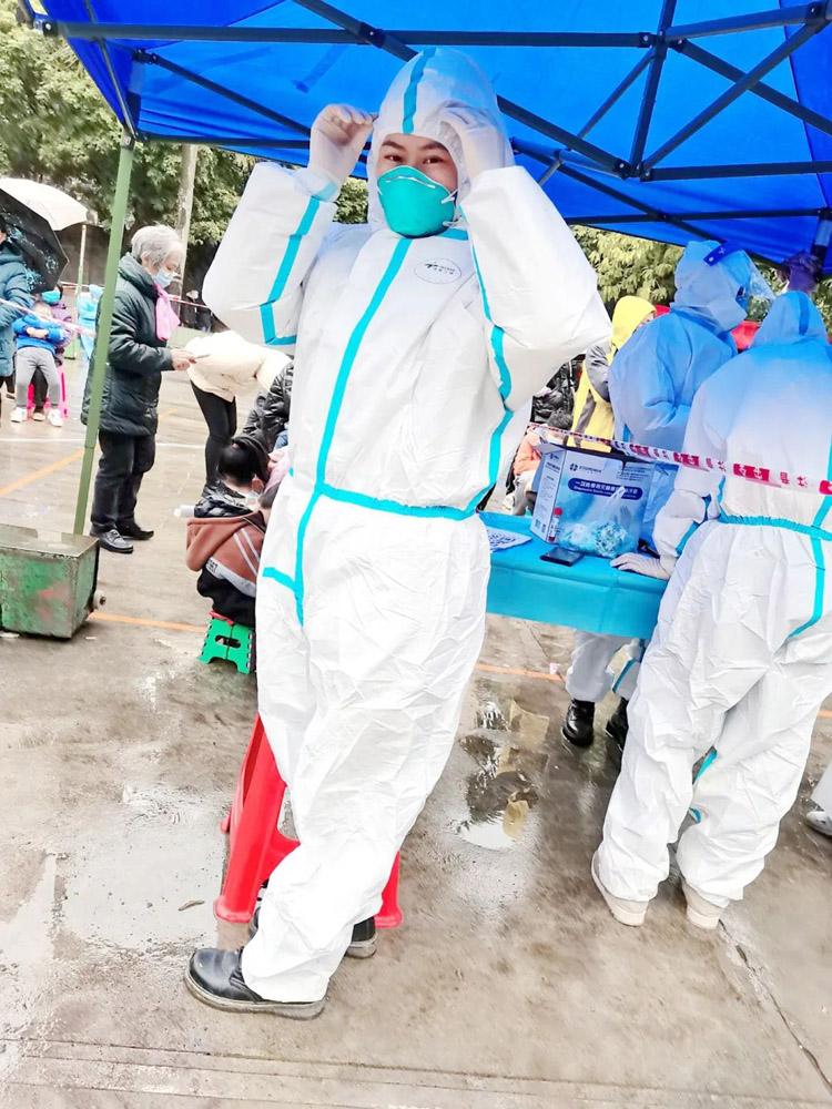 彭麗文,中共黨員,經(jīng)濟管理學院教師,參加博雅文園核酸采集點志愿服務活動