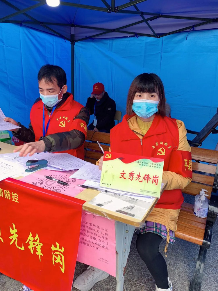 黨委副書記黃秋霞,林萌副校長、黃香琴黨辦副主任及彭麗文、聶紅平、黃官達等教師黨員堅守在黨員先鋒崗疫情防控一線