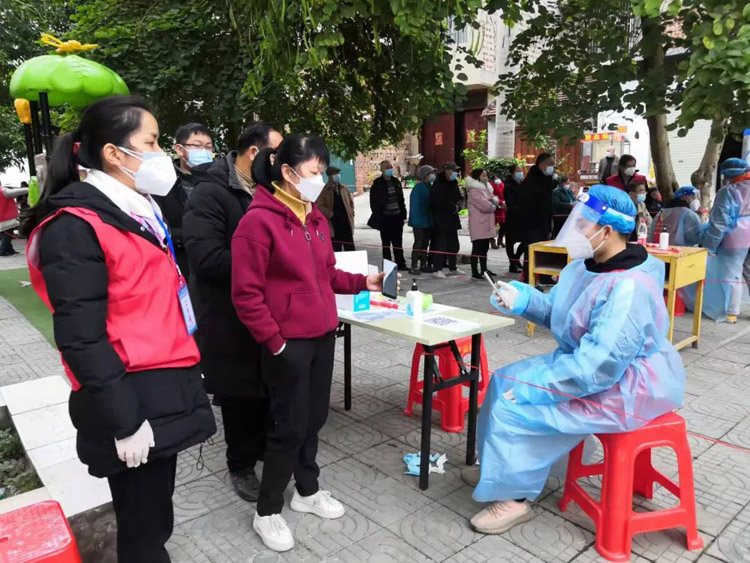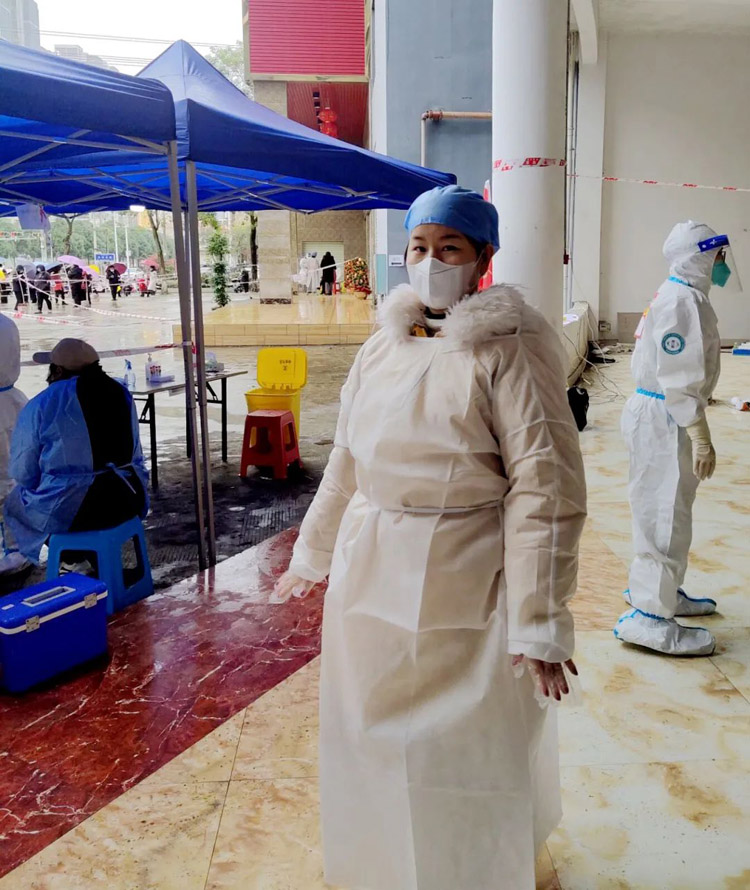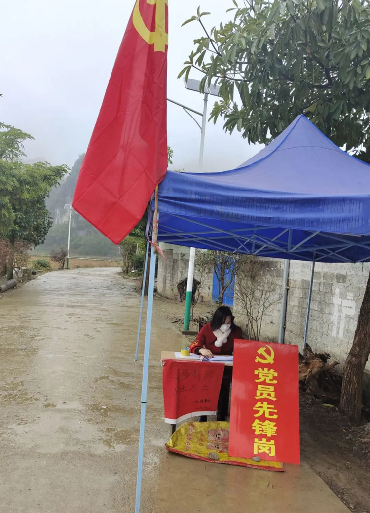 蔣孟霞,中共黨員, 學校附屬實驗中學班主任,在平果新安鎮(zhèn)協(xié)助開展疫情防控核酸檢測工作
