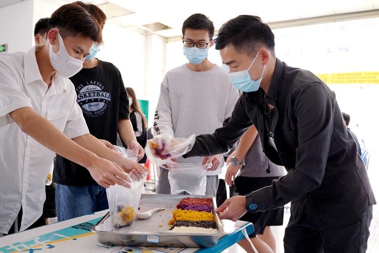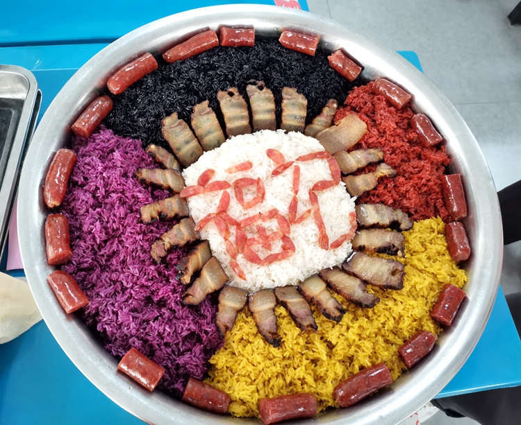 五色糯米飯是廣西農(nóng)歷三月三和清明節(jié)的特色傳統(tǒng)美食,4月5日上午,學(xué)校第一食堂及多功能餐廳免費分發(fā)五色糯米飯給師生,讓他們感受疫情防控期間濃濃的節(jié)日氛圍和學(xué)校的關(guān)愛。