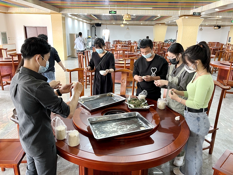活動現(xiàn)場,學(xué)生們早早就來到食堂有序排隊領(lǐng)取跟往年不一樣的清明糯米飯,滿懷欣喜,表示雖然疫情期間不能放假離開學(xué)校回家,但是在學(xué)校感受到了家庭般的溫暖,而且也體會到了廣西有趣的傳統(tǒng)文化。