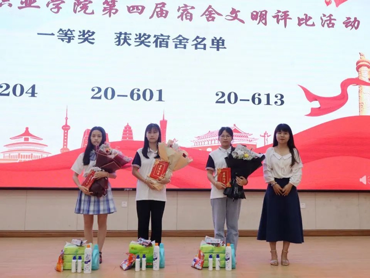 經濟管理學院辦公室主任雷紅為榮獲一等獎的宿舍頒獎
