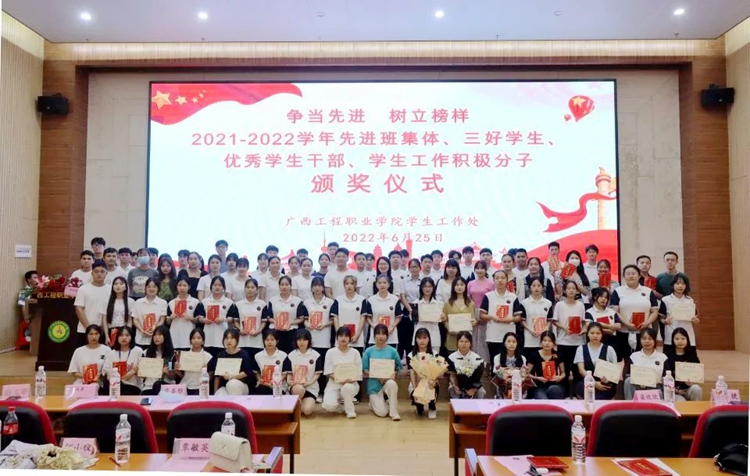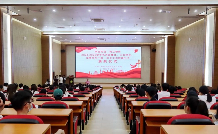 為進一步推動良好校風學風建設,鼓勵學生自主管理,營造健康文明、積極向上的學習和生活環(huán)境,推動班級文化、宿舍文化和集體凝聚力,增強同學們自我管理、自我教育、自我服務的意識,激勵同學們勤奮學習、奮發(fā)向上,表彰先進,樹立榜樣,2022年6月25日晚,學生工作處在圖文信息大樓一樓報告廳組織召開2021—2022學年度先進班集體、三好學生、優(yōu)秀學生干部、學生工作積極分子、文明宿舍等表彰大會。