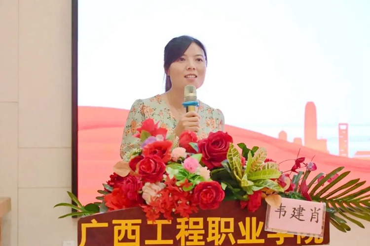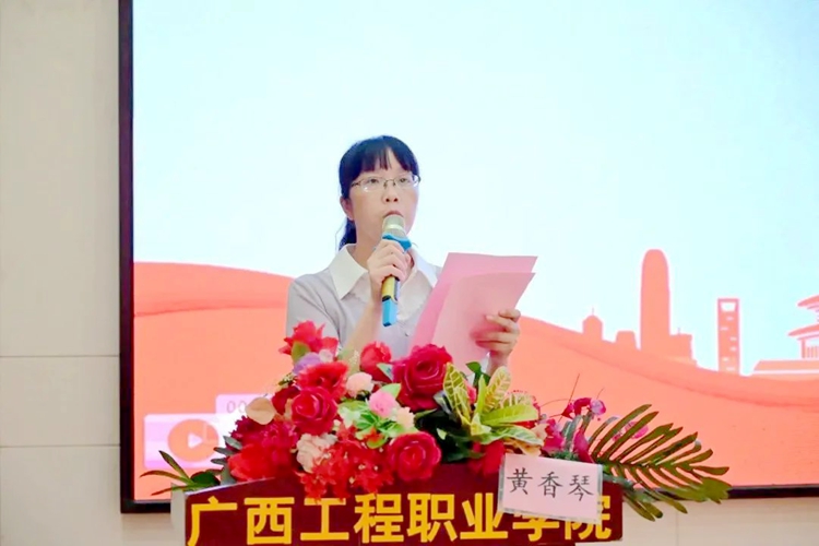黨委委員、學(xué)生工作處副處長李麗詩,黨委辦公室副主任黃香琴、思政課教學(xué)部韋建肖老師等擔(dān)任比賽評(píng)委。