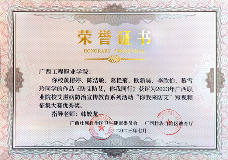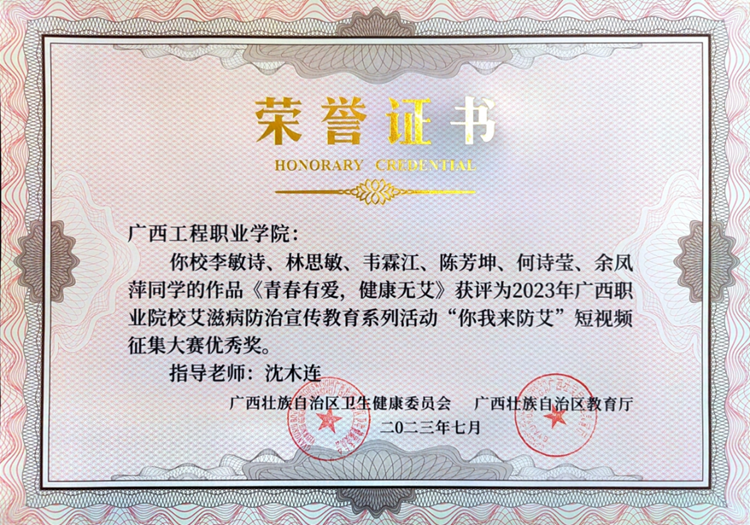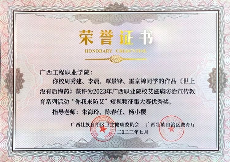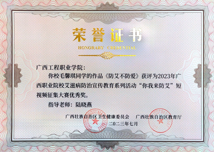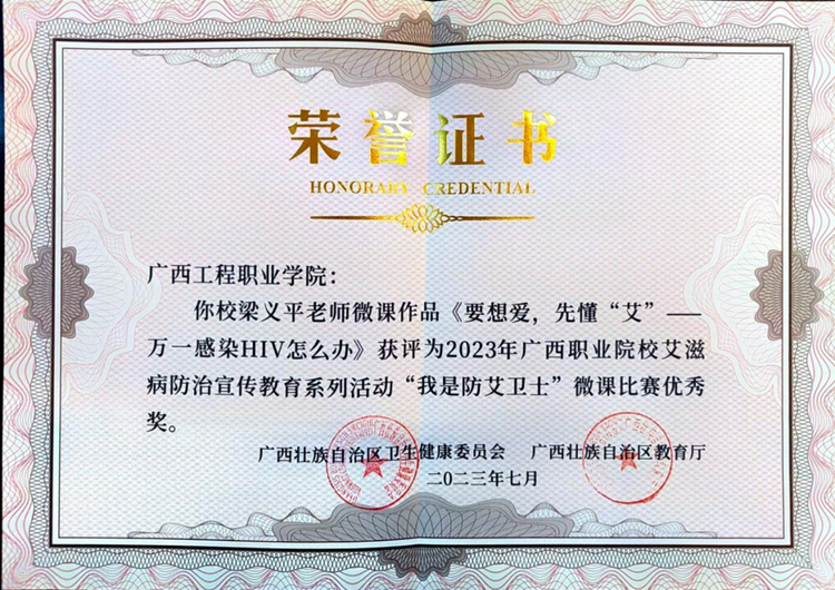 我校在廣西壯族自治區(qū)衛(wèi)生健康委、廣西壯族自治區(qū)教育廳舉辦的2023年廣西職業(yè)院校艾滋病防治宣傳教育系列活動(dòng)中,榮獲優(yōu)秀組織獎(jiǎng)。同時(shí),學(xué)校梁義平老師的作品《要想愛,先懂“艾”——萬(wàn)一感染HIV怎么辦》在“我是防艾衛(wèi)士”微課比賽中榮獲優(yōu)秀獎(jiǎng);學(xué)校教師指導(dǎo)學(xué)生參加“你我來(lái)防艾”短視頻征集大賽榮獲優(yōu)秀獎(jiǎng)十項(xiàng)。