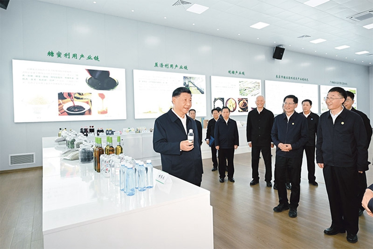2023年12月14日至15日,中共中央總書記、國家主席、中央軍委主席習近平在廣西考察。這是14日下午,習近平在來賓東糖鳳凰有限公司考察。