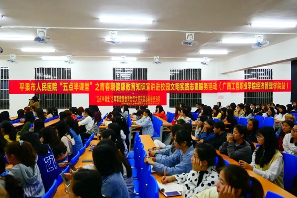 本次專題講座由平果市人民醫(yī)院團(tuán)總支書記、宣傳科副科長(zhǎng),平果市新時(shí)代文明實(shí)踐志愿服務(wù)隊(duì)醫(yī)療分隊(duì)副隊(duì)長(zhǎng)石冰主講。石冰副隊(duì)長(zhǎng)還曾在2020年2月19日赴湖北武漢市中心醫(yī)院支援抗擊新冠肺炎疫情,是一名抗疫英雄,于2020年4月8日勝利凱旋。